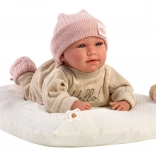 Hovoriace bábätko s mäkkým látkovým telom, ktoré po stlačení na hrudi začne hovoriť „mama“, „papa“ a vydávať reálny zvuk plačúceho bábätka. Ruky a nohy sú k telu prichytené kĺbom. Bábätko je polohovateľné a môže aj sedieť. Cumlík v balení slúži iba ako doplnok. Veľkosť 42 cm. Ručne vyrobené v Španielsku, balené v darčekovej krabici. Súčasťou balenia sú 3 x gombíková batéria LR44. Odporúčaný vek od 3 rokov. K bábätku je možné dokúpiť ďalšie originálne oblečenie z ponuky Llorens pre bábiky veľkosti 43 cm.