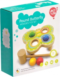 Táto kvalitná drevená zatĺkačka v podobe motýľa poteší deti veselými farbami a múdrym princípom hry. Dieťa kladivkom jemne udrie do farebných gulí a tie prepadnú do otvorov rovnakej farby, čím si precvičí koordináciu a rozpoznávanie farieb.