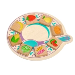 Deti prikladajú doštičky na tanier alebo do košíka a prirodzene si osvojujú dôležité poznatky o svete okolo seba. Ideálne pre predškolákov.
