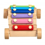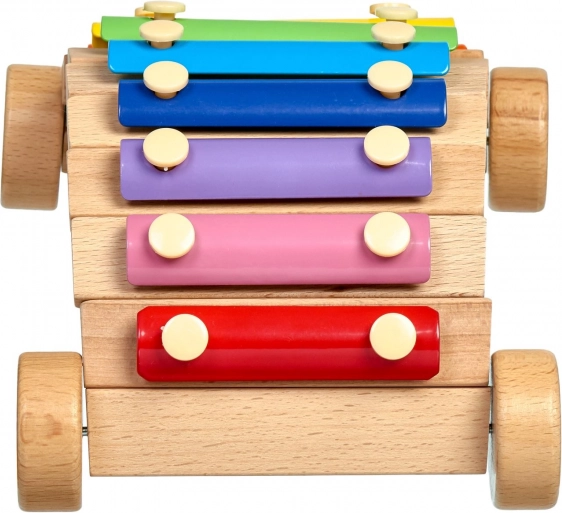 Drevený podvozok s kolieskami umožňuje xylofón ťahať či posúvať, takže učenie hudby je ešte zábavnejšie.