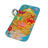 Objavte kreatívny drevený šnurovací set Princezná od Lucy & Leo – zábavnú hračku na rozvoj jemnej motoriky, kreativity a logického myslenia. Deti dozdobia princeznine vlasy farebnými doplnkami pomocou šnurovania a pritom trénujú koordináciu oko–ruka, rozlišovanie farieb a tvarov. Skvelá voľba ako Montessori pomôcka pre predškolákov.
