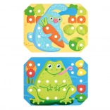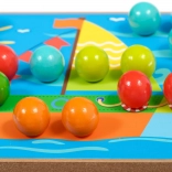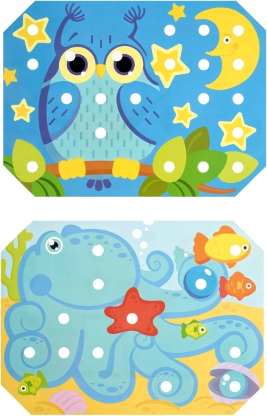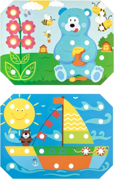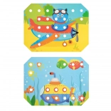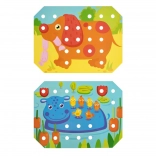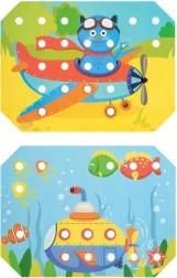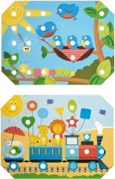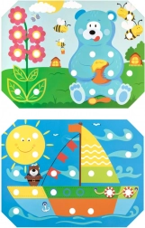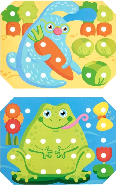 Deti si vyberú jednu z farebných predlôh, položia ju na drevený podstavec a obrázok vyplňujú kolíkmi pomocou pinzety alebo rúk. Môžu tiež trénovať šnurovanie a vyšívanie pomocou priložených šnúrok. Hra prirodzene podporuje sústredenie, logiku, trpezlivosť a presnosť.