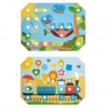 Štyri farebné šnúrky a perforované karty rozvíjajú sústredenie, vytrvalosť a kreativitu pri tvorbe vlastných vzorov.