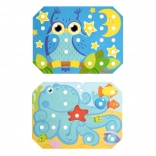 - Obsah balenia: 70 drevených kolíkov, 1 pinzeta, 12 obojstranných kariet s motívmi zvierat, drevený podstavec s otvormi, 4 farebné šnúrky, ľanové vrecúško.
