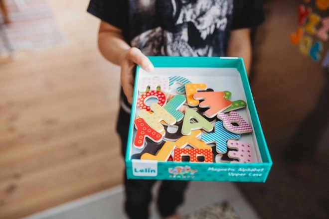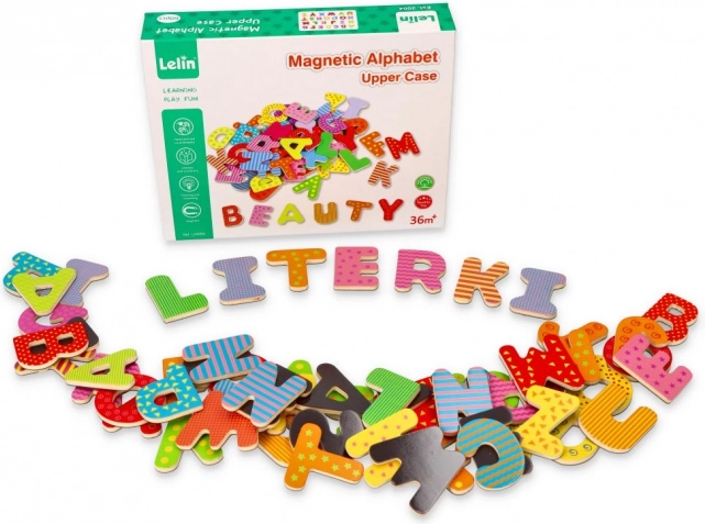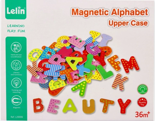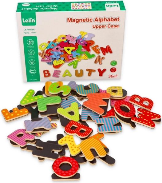 Táto sada magnetických drevených písmeniek podporuje prirodzené učenie formou hry. Vďaka magnetickej zadnej strane držia na chladničke, magnetickej tabuli či kovových plochách, takže sa deti môžu ľahko učiť abecedu, skladanie slabík a prvých slov.