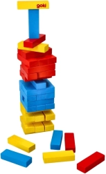 Táto klasická balančná hra z kvalitného dreva od značky GOKI ponúka jednoduché pravidlá, no maximálnu zábavu. Každé poschodie tvoria tri farebné dieliky a úlohou hráčov je opatrne vysúvať kocky z nižších poschodí a ukladať ich navrch. Veža musí zostať stáť – vyhrá ten, kto udrží rovnováhu čo najdlhšie.