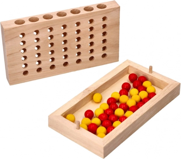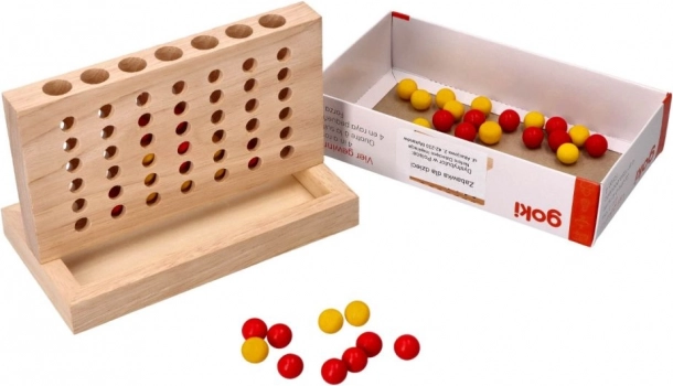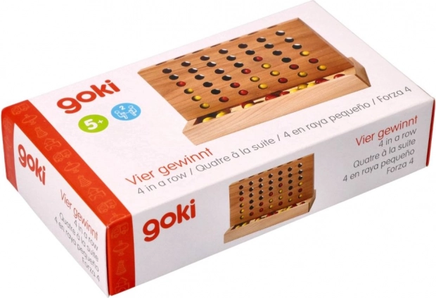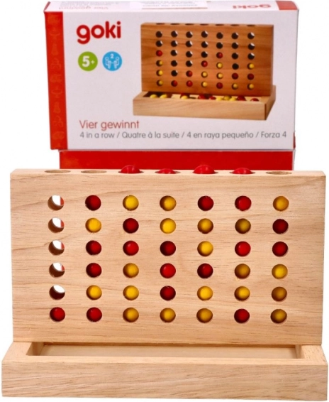 Goki drevená hra štyri v rade je strategická stolová hra, ktorá poskytuje nekonečné hodiny zábavy pre dvoch hráčov. Cieľom je byť prvý, kto spojí štyri guličky vo vodorovnom, zvislom alebo diagonálnom rade.