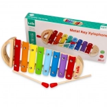 Xylofón obsahuje osem kovových kláves v jasných farbách, ktoré deťom umožňujú experimentovať s rôznymi tónmi a melódiami.