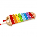 Objavte zábavu s týmto farebným xylofónom, ktorý ponúka osem kovových kláves v dúhových farbách. Je navrhnutý tak, aby prinášal radosť a pomáhal deťom rozvíjať ich hudobné schopnosti. Ergonomický tvar a pohodlná drevená rukoväť uľahčujú prenášanie a hranie.