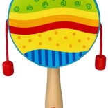 Roztočte rytmus s detským ručným bubienkom GOKI! Tento farebný hudobný nástroj z prírodného dreva znie otáčaním rukoväte, keď koráliky na šnúrkach nahrádzajú paličky. Skvelý pre prvé muzicírovanie, rozvoj rytmu a koordinácie, ideálny do škôlok aj domov. Bezpečné materiály, jednoduché ovládanie a zábavná zvuková odozva podporia detskú radosť z hudby.