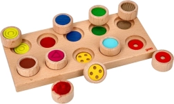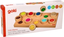 Objavte zmyslovú zábavu s drevenou hrou GOKI, ktorá rozvíja jemnú motoriku, hmatové vnímanie a rozpoznávanie povrchov aj farieb. Deti pomocou hmatu hľadajú správny otvor pre každý valček s odlišnou textúrou – bez pozerania, hravo a bezpečne.