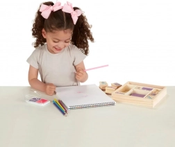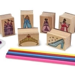 Táto súprava pečiatok s princeznami značky Melissa and Doug je ideálna pre rozvoj kreativity a jemnej motoriky u detí. Každý kus ponúka nádherné dizajny s rozprávkovou tematikou, ako je hrad, princezné, korunka, sklenená črievička alebo koč. Sada obsahuje tiež farebné ceruzky a dvojfarebnú podložku na pečiatky.