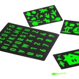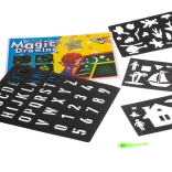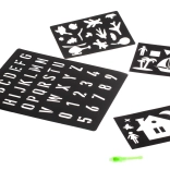 Sada obsahuje čierne plastové šablóny, ktoré deťom pomáhajú ľahko vytvoriť rôzne tvary a písmená.