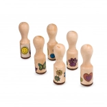 Odolné drevené telá s motívmi ako slniečko, srdiečko či motýľ zaistia pohodlný úchop a krásne odtlačky na papieri.