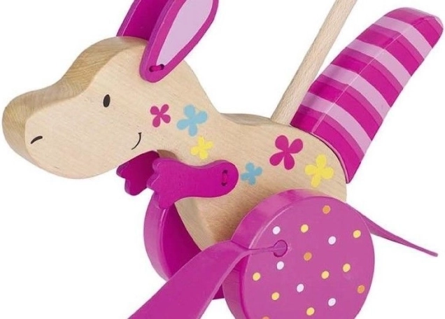 Roztomilý ťahací klokánik Susibelle poteší deti veselým dizajnom a jednoduchým ovládaním. Vďaka ľahkej tyči je ideálny pre prvé krôčiky a rozvoj koordinácie. Hračka má hladké hrany a je vyrobená s dôrazom na bezpečnosť, spĺňa normu CE.