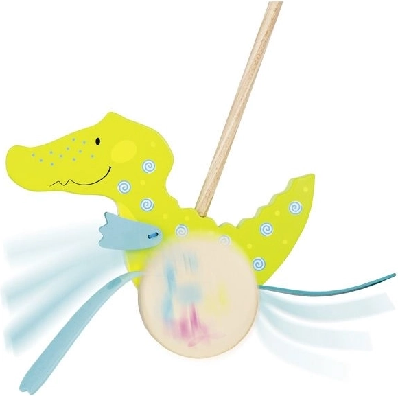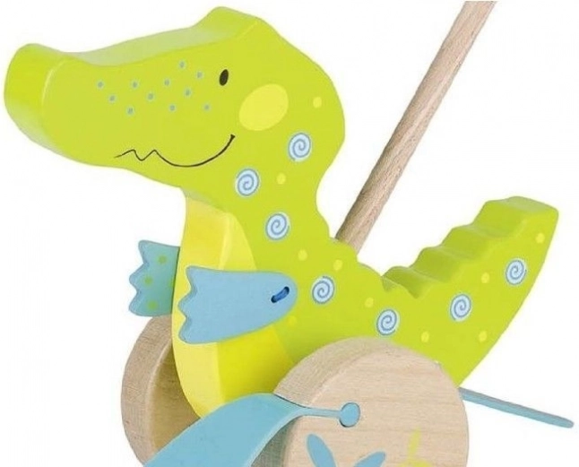 Drevený krokodíl na tyči GOKI je farebné strkadlo, ktoré deti zaujme pohyblivými plutvičkami a veselým klapaním pri jazde. Vďaka dlhej tyči majú deti hračku stále na očiach a ľahšie tak riadia svoju objaviteľskú trasu. Kvalitné masívne drevo a precízne spracovanie zaručujú dlhú životnosť aj bezpečnú hru.