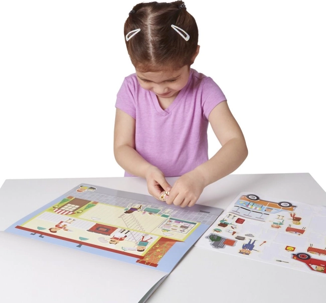 Každá sada obsahuje opakované použiteľné nálepky, ktoré možno jednoducho premiestňovať a znova lepiť, čo deťom umožňuje vytvárať nekonečné variácie scén.