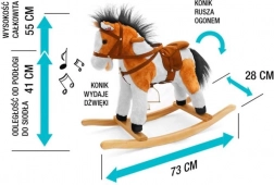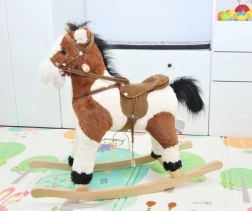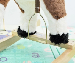Tento čarovný hojdací koník je vyrobený z mäkkého a kvalitného plyšu, čo zaručuje príjemný dotyk. Skvelým prvkom sú drevené hojdacie lišty a pevné drevené držadlá, ktoré zaisťujú stabilitu a bezpečnosť počas hry. Koník je vybavený sedlom so strmeňmi a uzdou, čo ešte viac približuje autenticitu jazdenia na koni.