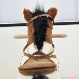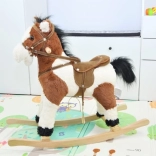 Tento kúzelný húpací koník je vyrobený z mäkkého a kvalitného plyšu, čo zaručuje príjemný dotyk. Skvelým prvkom sú drevené húpacie lišty a pevné drevené držadlá, ktoré zabezpečujú stabilitu a bezpečnosť počas hry. Koník je vybavený sedlom so strmeňmi a uzdou, čo ešte viac približuje autenticitu jazdenia na koni.