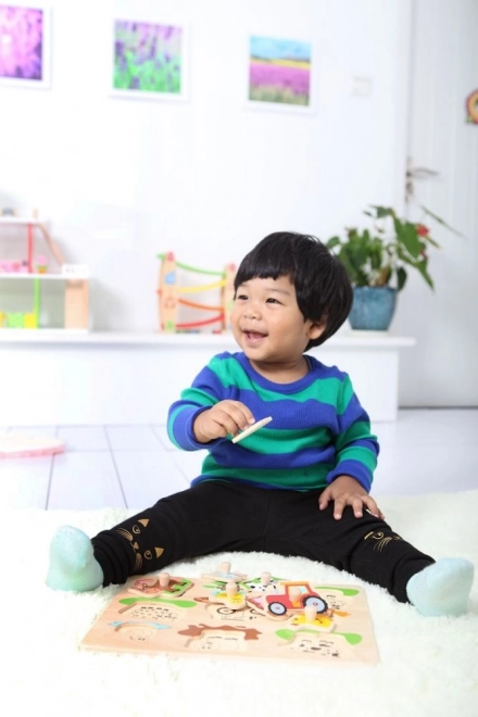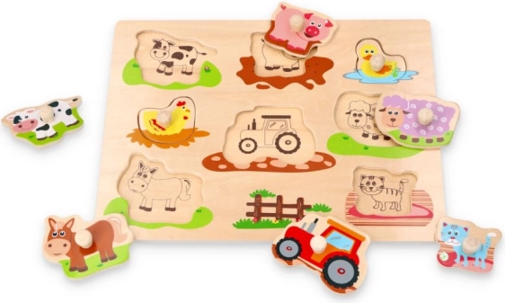 Roztomilá drevená skladačka ideálna pre deti, ktoré milujú farmu. Umožňuje deťom rozvíjať motoriku a naučiť sa poznávať svet okolo nich.