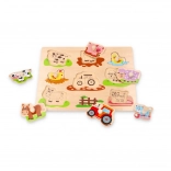 Objavte čaro farmy s touto drevenou skladačkou. Deti budú nadšené objavovaním postáv a scén z farmy, ktoré im priblížia život na vidieku. Špeciálne úchyty uľahčujú manipuláciu s jednotlivými dielmi, takže hračka je vhodná aj pre najmenších.