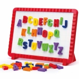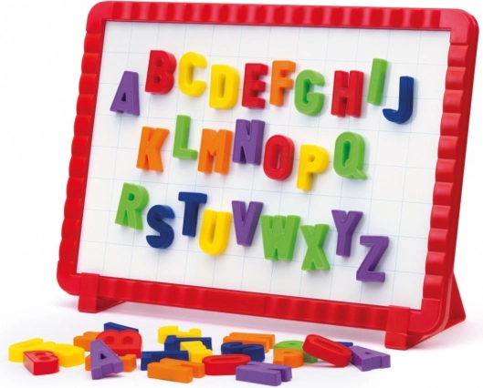 Súprava obsahuje 48 veľkých písmen a obojstrannú magnetickú tabuľu.
