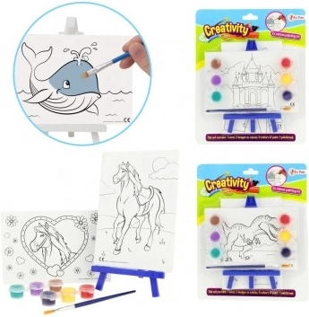 Mini plátno 2 ks so stojanom so štetcom a 6 farbami 15x10 cm