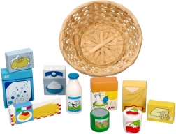 Drevený košík s pečivom a raňajkovými potravinami, 11-dielna sada