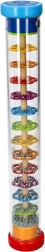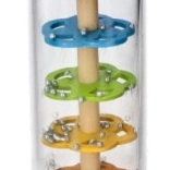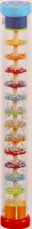 Dažďová palica GOKI je nádherne spracovaná zmyslová hračka, ktorá pri otáčaní priehľadného tubusu napodobňuje zvuk padajúceho dažďa. Guličky sa presýpajú cez vrstvy farebných kvetov a vytvárajú upokojujúce, prirodzené zvuky, ktoré deti fascinujú a podporujú ich sústredenie.