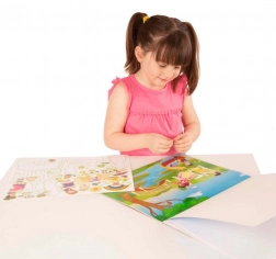 Samolepky možno opakovane lepiť a presúvať, takže deti môžu ľahko meniť príbeh a skladať nové scénky.