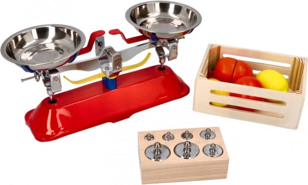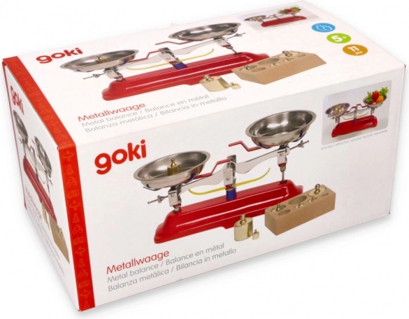 Detská kovová váha GOKI je stabilná výuková pomôcka, ktorá podporuje logické myslenie, jemnú motoriku a základné matematické zručnosti. Vďaka robustnej kovovej konštrukcii a odnímateľným miskám je manipulácia jednoduchá a bezpečná. Priložená sada siedmich závaží umožňuje deťom porovnávať a určovať hmotnosti predmetov hravou formou.