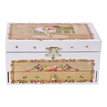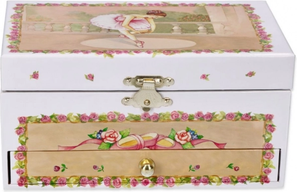Táto pôvabná šperkovnica v štýle hracej skrinky vyniká jemným dizajnom a kúzelným prekvapením vo vnútri. Po otvorení veka sa spustí klasická melódia Labutie jazero a malá baletka sa začne otáčať pred zrkadielkom. Vďaka zásuvke a členenému priestoru ľahko uložíte prstienky, náramky aj ďalšie poklady.