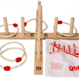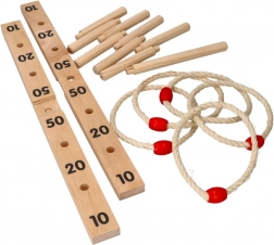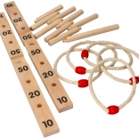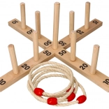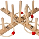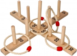 Táto hra obsahuje krížovú základňu s 9 drevenými stĺpikmi a päť provázkových krúžkov s dreveným prvkom pre ľahké hádzanie. Hra je vyrobená z kvalitného dreva, čo zaisťuje dlhodobú zábavu.