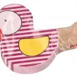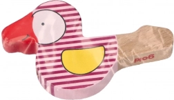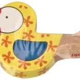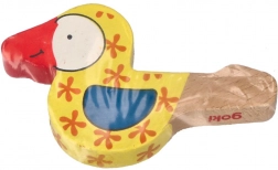 Píšťalka je navrhnutá v tvare vtáčika s pestrou farebnou paletou, aby pritiahla pozornosť a záujem detí.