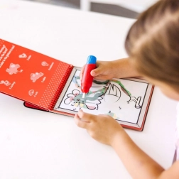 Táto maľovanka umožňuje deťom maľovať s vodou bez znečistenia. Keď voda vyschne, maľovanka je pripravená na nové obrázky.