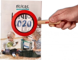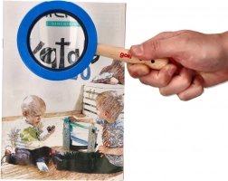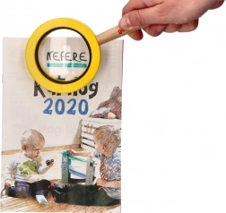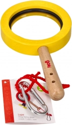 Detská lupa s pevným dreveným telom, ideálna pre skúmanie a vnímanie detailov v prírode.