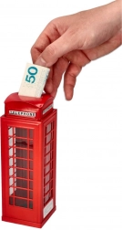 Táto pokladnička využíva ikonického dizajnu britskej telefónnej búdky, čo z nej robí atraktívny dekoratívny prvok.