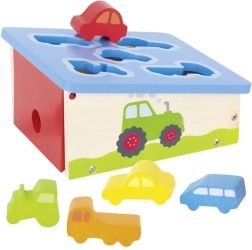 Tento kvalitný drevený vkladací box GOKI s otváracím vekom a výrezmi v tvare vozidiel je ideálnou pomôckou na prvé objavovanie tvarov. Deti sa zábavnou formou učia rozpoznávať tvary a farby, rozvíjajú koordináciu oko–ruka a precvičujú jemnú motoriku prstov.