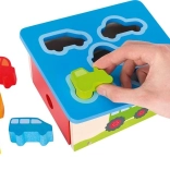 Drevený vkladací box s motívom vozidiel podporuje jemnú motoriku, logické myslenie a učenie tvarov a farieb. Masívne drevo, bezpečné spracovanie a hravý dizajn pre najmenších.