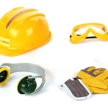 Detská sada dielenských doplnkov s licenciou BOSCH poteší malých kutilov. Obsahuje helmu, ochranné rukavice, ochranné okuliare a ochranu sluchu, aby sa každý malý opravár cítil ako skutočný profesionál.
