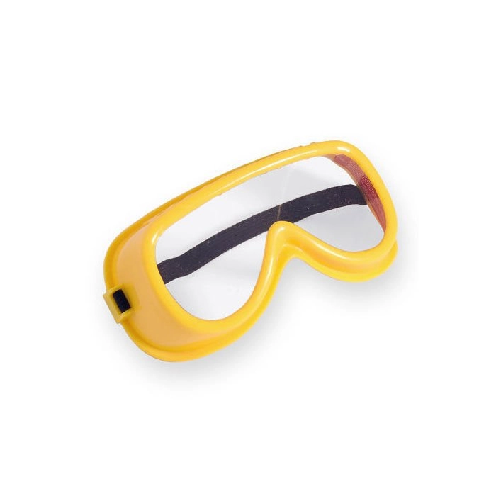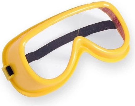 Žlté okuliare s priehľadnými plastovými sklami a elastickou gumičkou dopĺňajú ľahké slúchadlá v zeleno‑žltom prevedení pre ešte realistickejší zážitok.