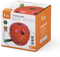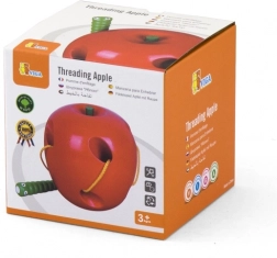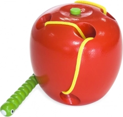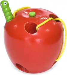 Jabĺčko je vyrobené z bukového dreva a lakované bezpečnými, netoxickými farbami v živých odtieňoch, ktoré deti motivujú k opakovanej hre. Ideálne ako Montessori pomôcka na rozvoj jemnej motoriky a sústredenia u detí od 3 rokov.