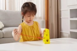 Šnúrka s myškou motivuje deti k tvoreniu vlastných vzorov a tichému sústredenému hraniu doma aj na cestách.