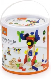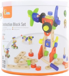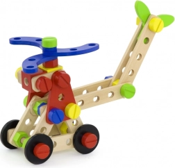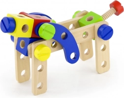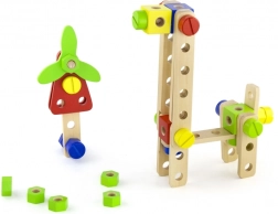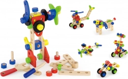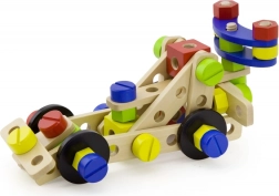 Táto univerzálna drevená stavebnica ponúka deťom nekonečné možnosti stavania – od vozidiel a zvieratiek až po vrtuľník či robota. Vďaka pevným dreveným dielom, skrutkám a spojkám si deti precvičia koordináciu oko–ruka a naučia sa základy konštrukčného myslenia.