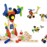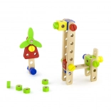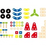 Pestrý výber skrutiek, matíc, doštičiek a koliesok umožní postaviť desiatky modelov – od zvieratiek po vozidlá a vrtuľníky. Ideálne na rozvoj fantázie a trpezlivosti.