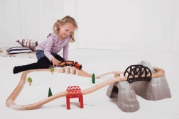 Táto drevená vlaková sada s vysokohorskou dráhou je ideálna pre malých dobrodruhov. Obsahuje 12 dielov a umožňuje kombináciu s ďalšími železnicami, čo podporí ich predstavivosť a koordináciu pri hre.