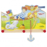 Objavte praktický vešiak na oblečenie inšpirovaný príbehmi malej cestovateľky Peggy Diggledey, ktorý je vyrobený z lakovaného dreva a je vybavený tromi háčikmi. Viacfarebný dizajn prináša radosť deťom oboch pohlaví a vďaka motívu lode a zavesenej kotve bude vyzerať parádne v detskej izbe.