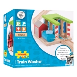 Produkt je vyrobený z kvalitných a zodpovedne získaných prírodných materiálov a spĺňa aktuálne európske bezpečnostné normy. Vďaka univerzálnym rozmerom je umývačka kompatibilná s väčšinou drevených koľají a vláčikov na trhu. Vlak nie je súčasťou balenia, čo umožňuje jednoduché prepojenie s už existujúcimi sadami.