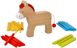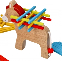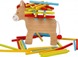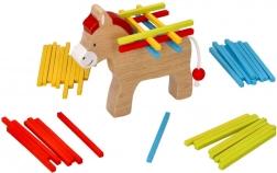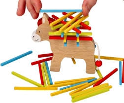 Hra pomáha rozvíjať jemné motorické zručnosti vďaka precíznemu ukladaní tyčiniek na oslíka.