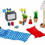 Ponorte sa do sveta fantázie a zábavy s týmto úchvatným setom miniatúrneho nábytku a doplnkov. Tento set je vytvorený pre deti od 3 rokov a ponúka nespočet možností pre kreatívne hranie. Detailne spracované drevené a plastové predmety ako lampy, televízor, rastliny a knižky obohatia každú detskú izbičku.